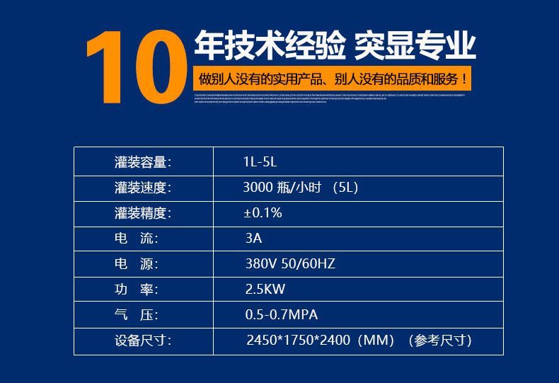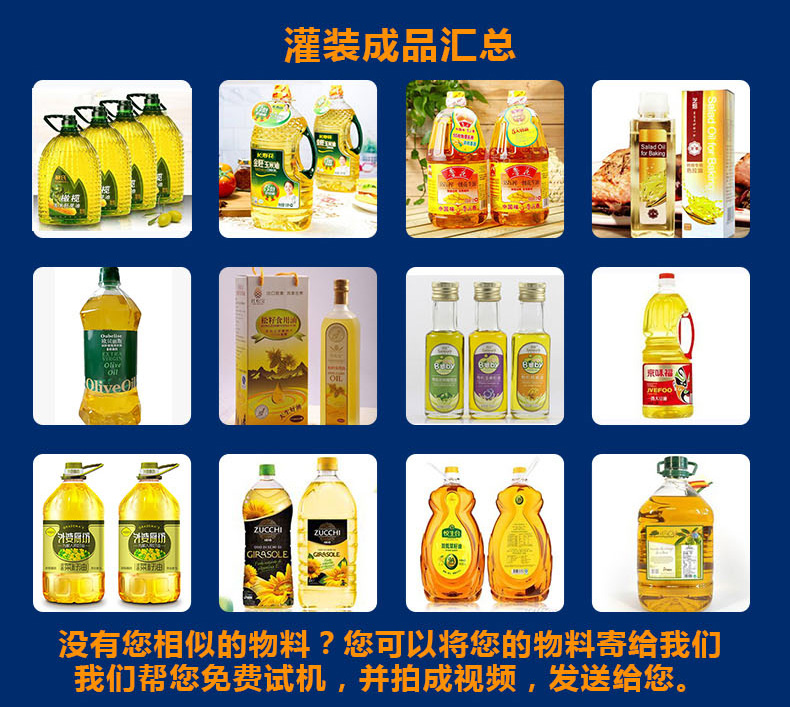 該系列灌裝機采用流量計式計量灌裝原理,多項認證,適用于各種規格(1-5升)的南瓜籽油、榛子油、牡丹籽油、芝麻油、核桃油、山茶油