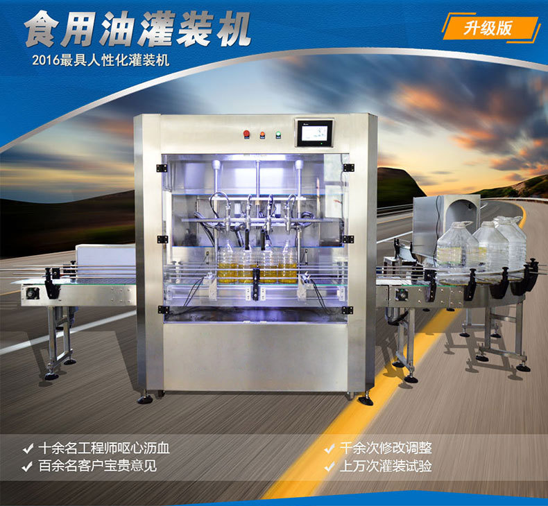 全自動玉米油灌裝機是全自動油類灌裝設備中比較特殊的一種,是根據玉米油的的特殊品質而量身打造的專門用來灌裝玉米油類產品的全自動灌裝機械。
